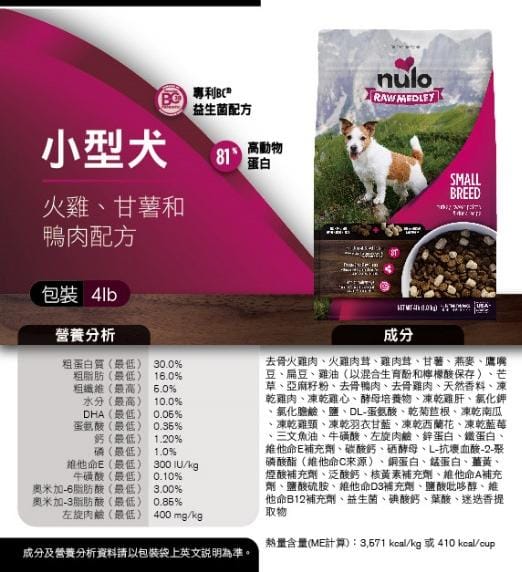 4磅 Nulo Raw Medley For Small Breeds Turkey, Sweet Potato & Duck Recipe 火雞紅薯鴨肉及多元凍乾小型成犬糧