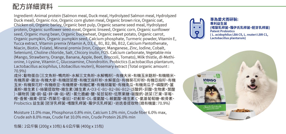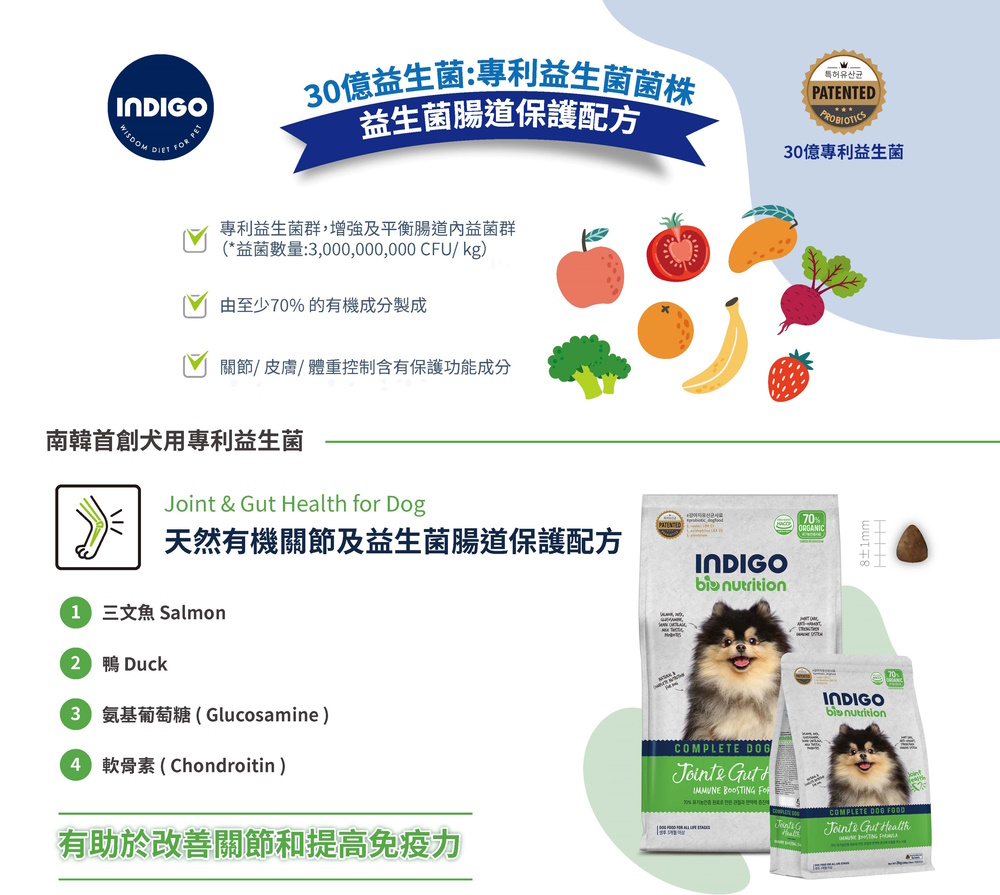 2公斤 Indigo 天然有機關節及益生菌腸道全犬糧 (內有獨立包裝 200克x10包) 韓國製造 (到期日: 4-2027)