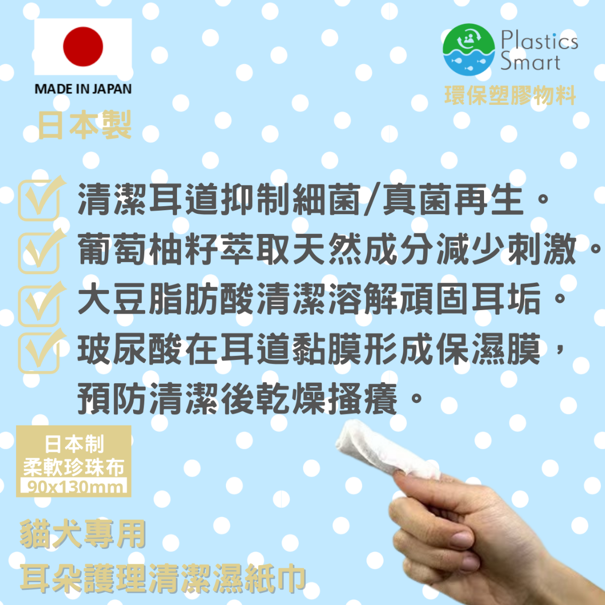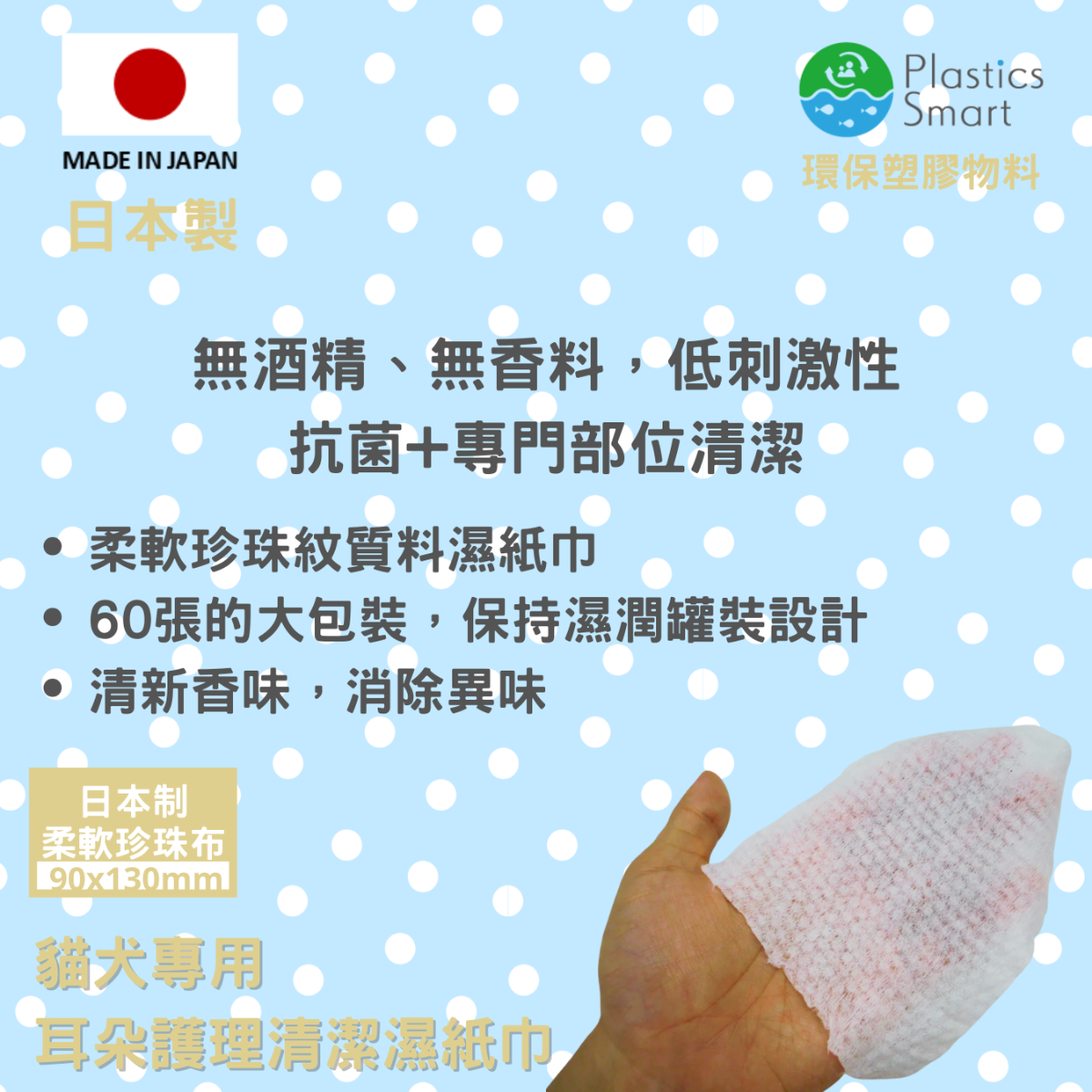 60片HonaYoko耳朵護理清潔濕紙巾,櫻花香 , 日本製造