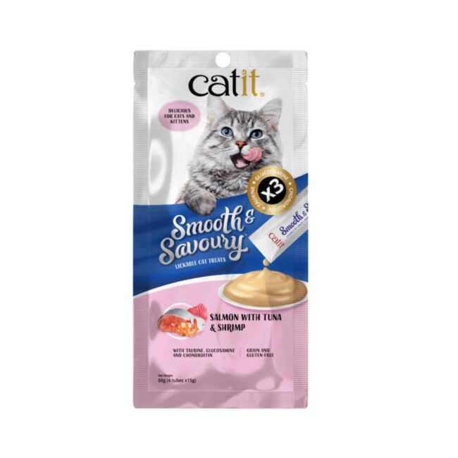 4支裝Catit 三文吞拿魚及蝦肉醬貓小食,15克X4支
